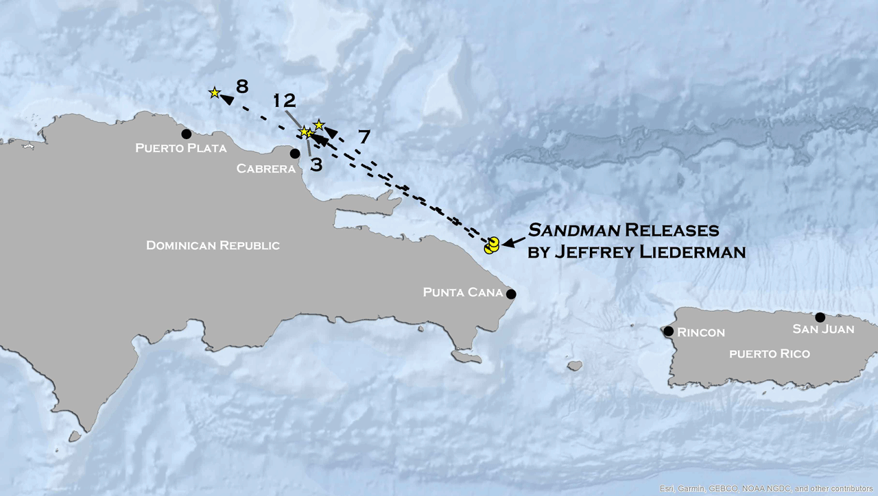 The first recovery we had in Venezuela also occurred in February but that fish was tagged and released aboard Summergirl on June 8th, 2007, off Charleston, South Carolina, and was recovered 263 days later on February 26th, 2008. As for the additional recoveries in the Dominican Republic for fish tagged and released along the U.S. East Coast, the Miami based charter boat the Thomas Flyer had two of their tagged fish recaptured along the north coast of DR. The first fish was tagged and released off Miami, FL, on June 3rd, 2010, and the fish was recaptured 192 days later on December 12th, 2010. Similar to the most recent recovery, Thomas Flyer’s second DR recovery was tagged and released in July and the fish was recovered in February. Total time at large for the Thomas Flyer’s 2017 DR recovery was 223 days, only 13 days slower than Killin’ Time II’s 2022 recovery.